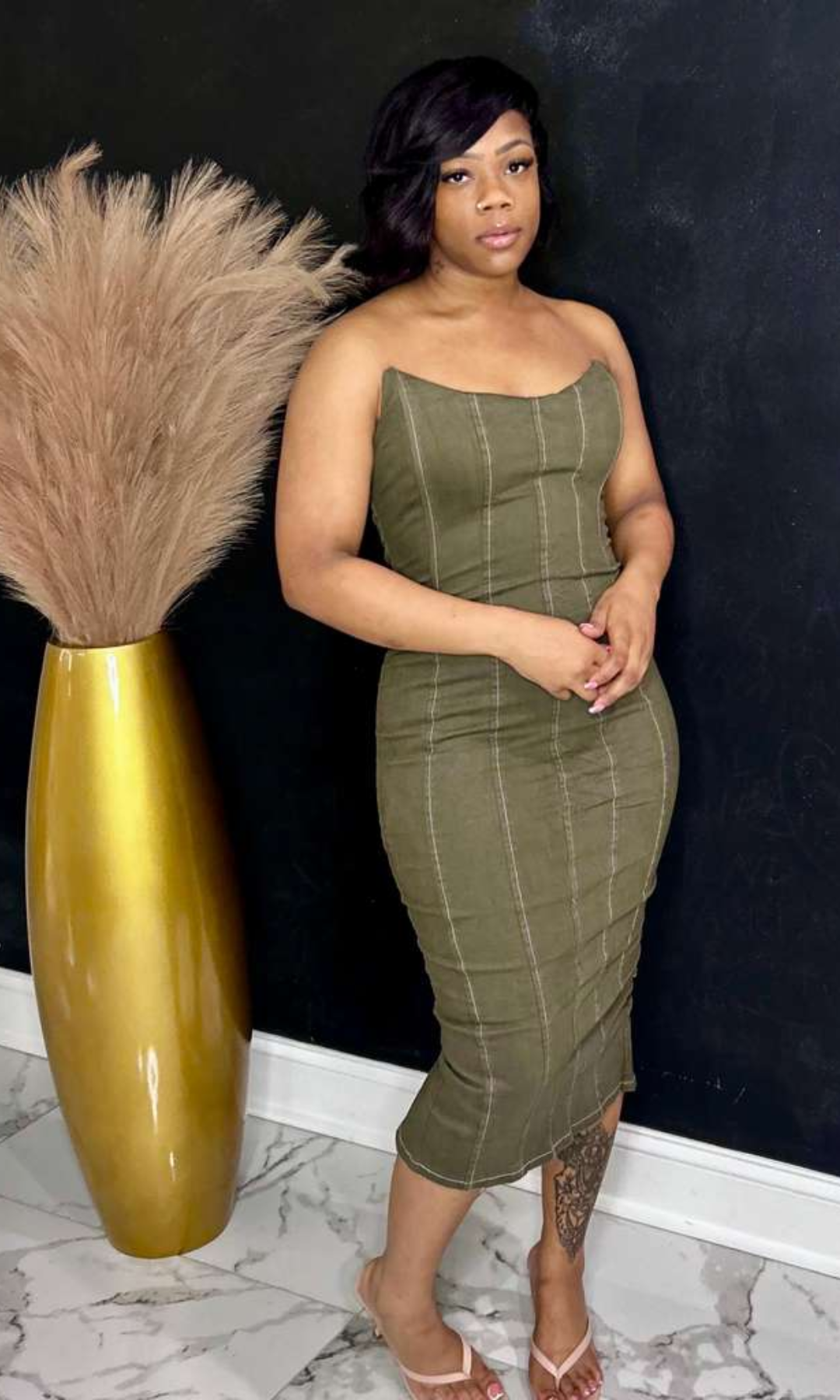 Taupe Backslit bodycon dress