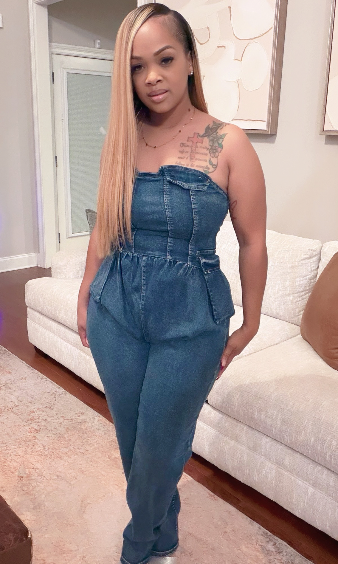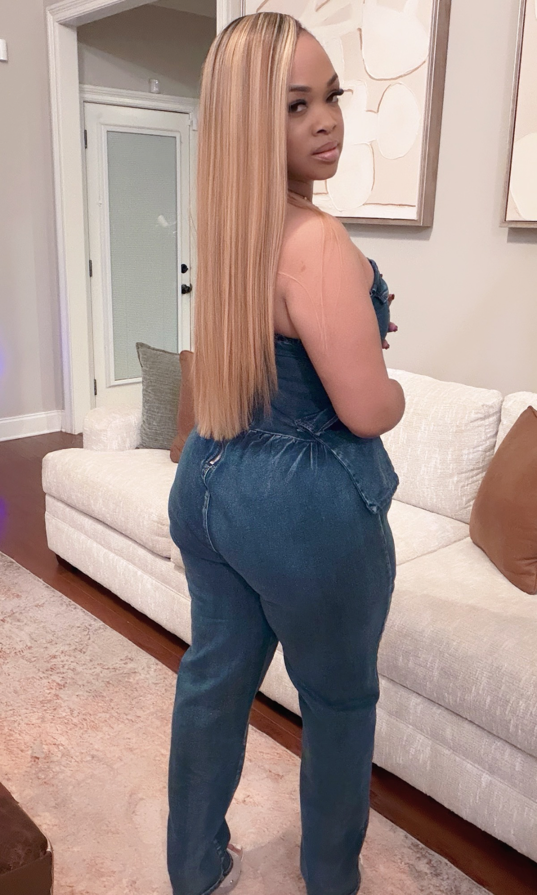 Step into effortless style with our Bag Lady Oversized Jumpsuit — the perfect mix of casual, chic, and confident. This denim one-piece features a strapless neckline, roomy functional side pockets, and a relaxed straight-leg fit that gives that perfect oversized look without swallowing your shape. It hugs in the right places and drapes everywhere else for that effortlessly cute vibe.